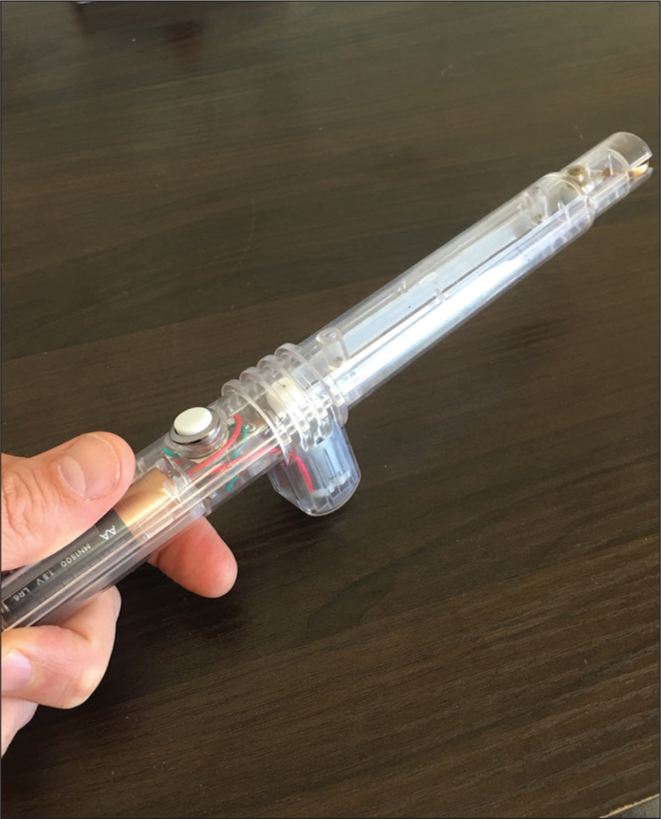 A Fun Fly Stick is a battery-powered handheld Van de Graaff generator that provides a positive charge at the end of a cardboard tube (Fig. 1). It is particularly convenient for classroom demonstrations such as the Leyden jar or charging by induction, but (of course) will not work for the photoelectric effect (you need electrons for that). But today, ladies and gentlemen of physics, I have found a way to reverse the Fun Fly Stick, and this method will now produce either negative charge or positive charge with a simple maneuver.
