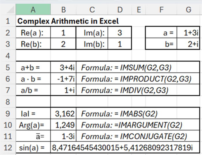 A surprise to many physicists: Excel can handle complex numbers