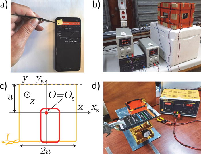 Experimental investigation of the axial and in-plane magnetic fields of a square coil using a smartphone